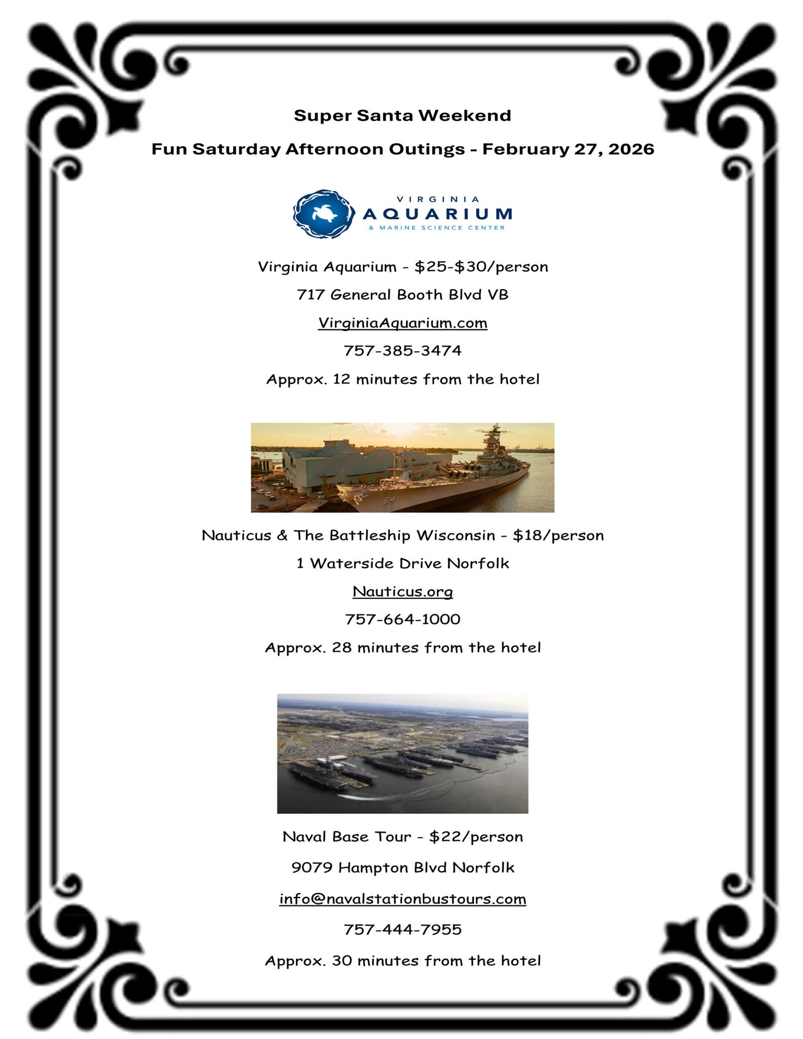 2:30 pm – 4:00 pm – Christmas Characters with Bob/Teresa Gretton, Colleen, Chris and Hope.